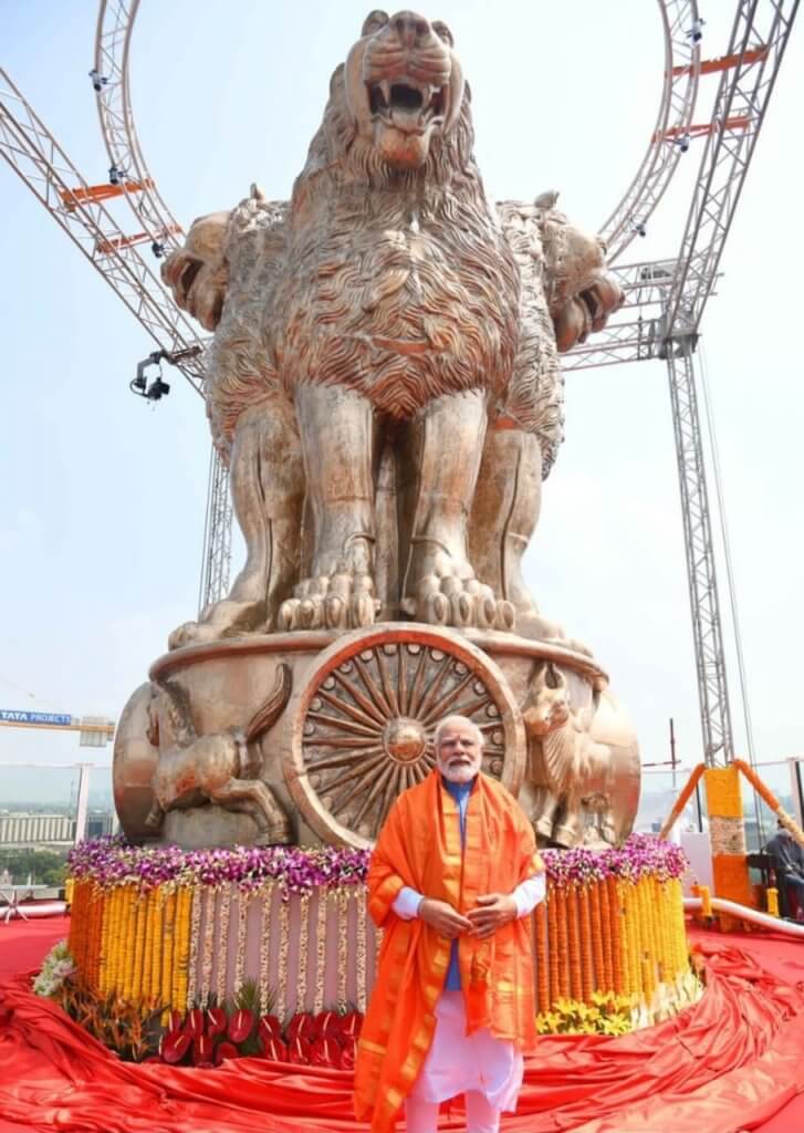 बता दें कि नए संसद भवन की छत पर बने कांस्य के राष्ट्रीय प्रतीक अशोक स्तंभ के अनावरण के दौरान प्रधानमंत्री नरेंद्र मोदी के साथ केंद्रीय मंत्री हरदीप सिंह पुरी और लोकसभा स्पीकर ओम बिड़ला भी मौजूद रहे। जान लीजिए कि कांस्य के इस राष्ट्रीय प्रतीक की ऊंचाई 6.5 मीटर है।
