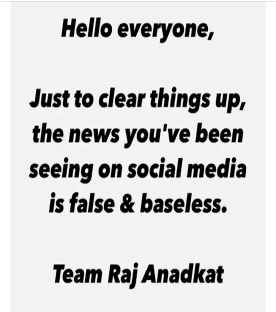 वहीं दूसरी तरफ राज की टीम ने भी सोशल मीडिया के जरिए इन खबरों पर अपना रिएक्शन दिया है। एक्टर ने एक इंस्टाग्राम स्टोरी शेयर करते हुए लिखा- ‘हैलो, मैं सिर्फ कुछ चीजें साफ करना चाहता हूं। जो खबर आप सोशल मीडिया पर देख रहे हैं वो झूठी और बेसलेस है। टीम राज उनादकट।’ खैर सच क्या है यह तो हम नहीं जानते बस इतना जरूर है कि ये दोनों इस समय चर्चा का विषय बने हुए हैं।
