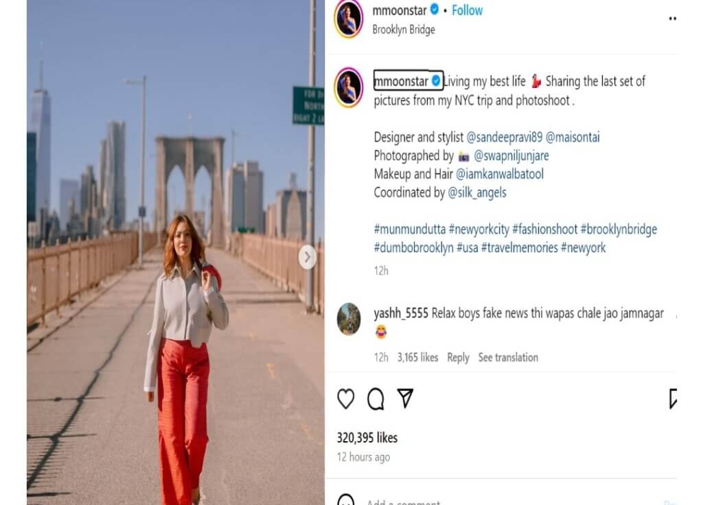 इस खबर के वायरल होने के बाद दोनों एक्टर्स ने चुप्पी तोड़ते हुए कहा कि ये सब फेक है। ई-टाइम्स से बात करते हुए मुनमुन ने कहा कि यह खबर फेक और फनी है। उन्होंने कहा-  यह अफवाह पूरी तरह से मनगढ़ंत है,  वह इस फेक न्यूज पर अपनी एनर्जी वेस्ट नहीं करना चाहतीं। इसके अलावा मुनुमुन ने अपनी न्यूयॉर्क ट्रिप की कुछ तस्वीरें शेयर करते हुए लिखा- अपनी बेस्ट लाइफ जी रही हूं।