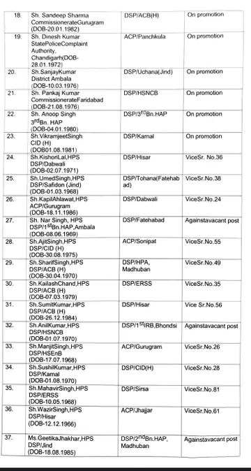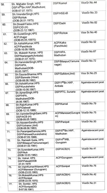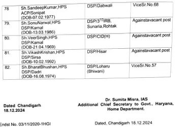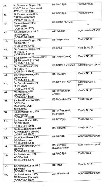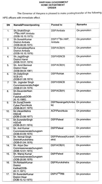 हरियाणा सरकार ने विधानसभा चुनाव के बाद बुधवार शाम को बड़ा प्रशासनिक फेरबदल किया। सरकार ने 47 HCS अधिकारियों के साथ 82 DSP इधर-उधर किए।