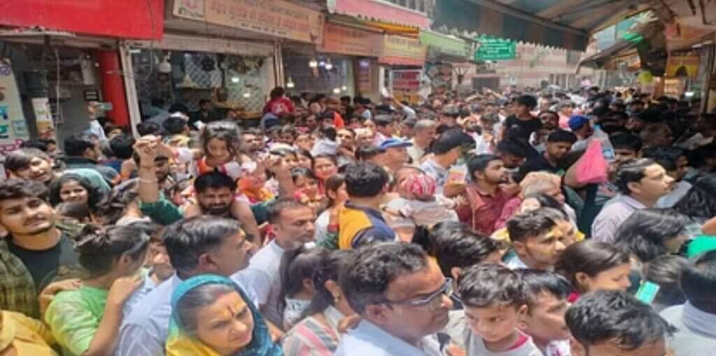 वृंदावन के ठाकुर श्रीबांकेबिहारी मंदिर में शुक्रवार सुबह जहां सूर्य की तपिश जला रही थी, तो वहीं बिहारी जी के दर्शन करना का उत्साह लोगों में छाया हुआ दिखाई दिया। गर्मी की परवाह न कर अपने आराध्य के दर्शन करने के लिए श्रद्धालुओं की भीड़ मंदिर की ओर बढ़ती दिखाई दी।