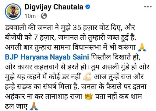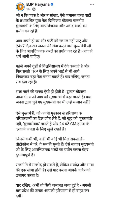 दुष्यंत चौटाला ने कहा है कि उन्होंने डीजीपी से संपर्क करने की कोशिश की, लेकिन उनका फोन नहीं उठाया गया। उन्होंने स्पष्ट किया कि यदि संबंधित मामले में CIA इंचार्ज के खिलाफ एफआईआर दर्ज नहीं की गई, तो वे कानूनी विकल्प अपनाते हुए Punjab and Haryana High Court का रुख करेंगे।