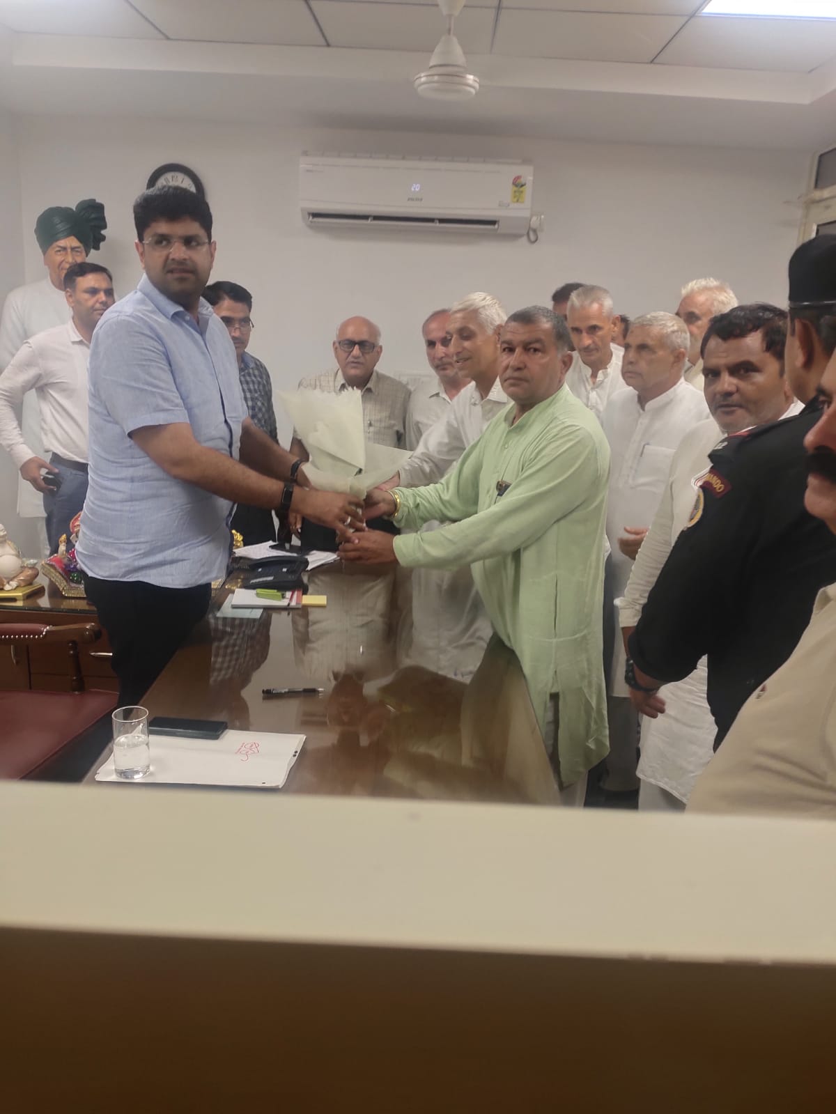 हरियाणा परिवहन कर्मचारी संघ 1342संबंधित जननायक कर्मचारी मजदूर संघ को मान्यता मिलने उपरांत यूनियन का प्रतिनिधिमंडल डिप्टी सीएम श्री दुष्यंत चौटाला जी से उनके चंडीगढ़ कार्यालय में आज मिलकर उनको गुलदस्ता भेंटकर व मिठाई खिलाकर उनका धन्यवाद किया और हरियाणा रोडवेज मे कार्यरत कर्मचारियों की लंबित पड़ी मांगों के बारे में विस्तार से अवगत करवाया ।