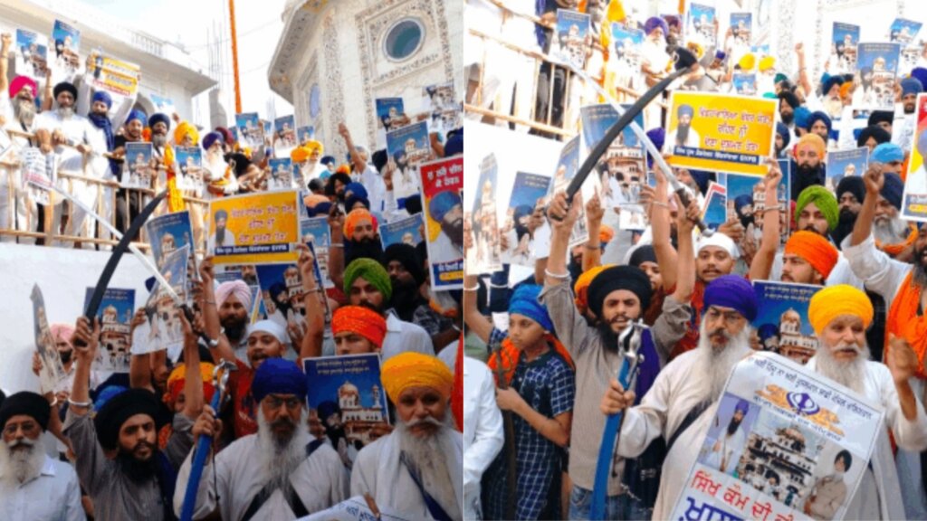 पंजाब में गुरूवार को ऑपरेशन ब्लू स्टार की 40वीं बरसी मनाई गई। इसके लिए अमृतसर स्थित गोल्डन टेंपल में काफी संख्या में सिख समुदाय के लोगों की भीड़ जमा हुई। यहां भीड़ ने हाथों में तलवारें लहराते हुए खालिस्तान जिंदाबाद के नारे लगाए। हाथ में ऑपरेशन ब्लू स्टार में मारे गए जरनैल सिंह भिंडरावाले के पोस्टर लेकर उसके समर्थन में भी नारे लगाए।