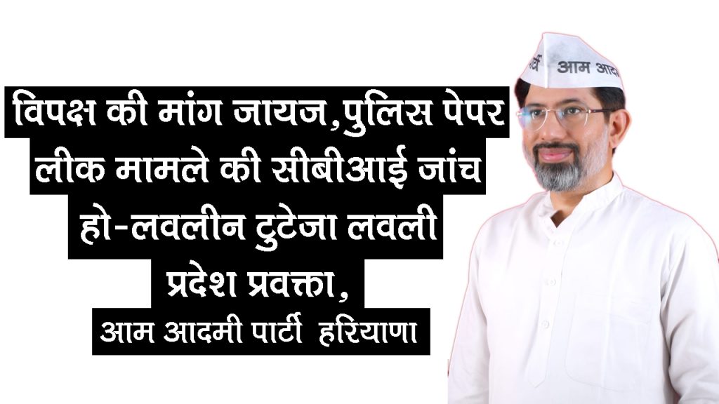 आम आदमी पार्टी के प्रदेश प्रवक्ता लवलीन टुटेजा लवली ने हरियाणा की खट्टर पर आरोप लगाया सरकार के संरक्षण के बिना पेपर लीक होना असंभव है। पेपर लीक मामला बेहद गंभीर है और जनता के सामने सच्चाई आना बेहद जरूरी है।