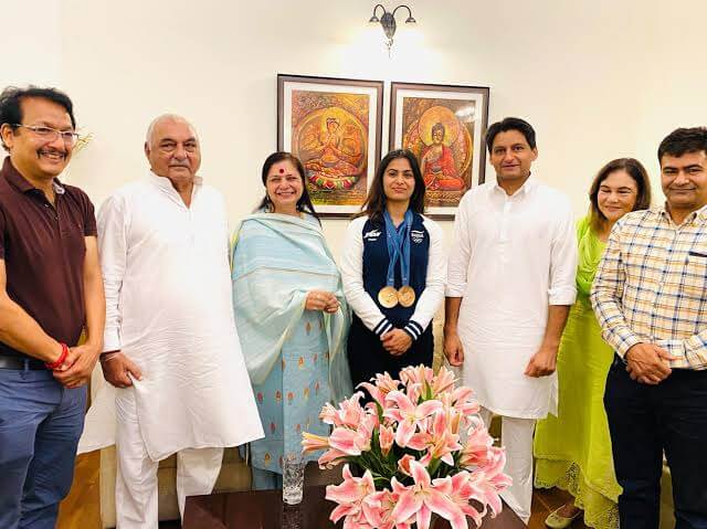 ओलंपिक पदक विजेता मनु भाकर और उनका परिवार पूर्व सीएम भूपेंद्र सिंह हुड्डा के दिल्ली स्थित आवास पर पहुंचा। सांसद दीपेंद्र सिंह हुड्डा ने सोशल मीडिया पर इसकी जानकारी दी। उन्होंने लिखा, “मनु एक ही ओलंपिक संस्करण में 2 पदक जीतने वाली पहली भारतीय खिलाड़ी बन गई हैं और उनके सुनहरे भविष्य के लिए शुभकामनाएं। इस अवसर पर मैंने उनके परिवार से मुलाकात की और उन्हें बधाई दी। मनु भाकर की यह शानदार जीत हर देशवासी की जीत है और इस जीत ने पूरे विश्व में देश और प्रदेश का नाम रोशन किया है।”