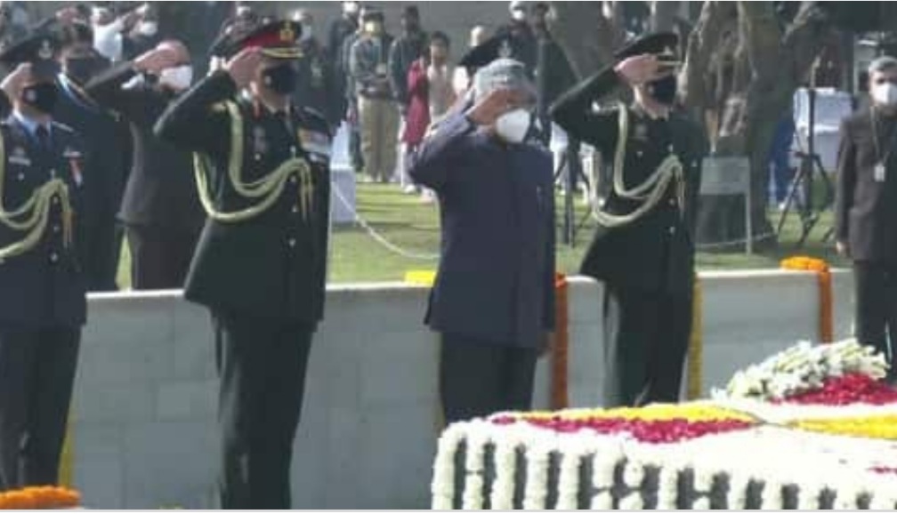 राष्ट्रपिता महात्मा गांधी की आज 74वीं पुण्यतिथि है। इस मौके पर राष्ट्रपति रामनाथ कोविंद, प्रधानमंत्री नरेंद्र मोदी समेत पूरे देश ने उन्हें श्रद्धांजलि दी है। प्रधानमंत्री नरेंद्र मोदी रविवार को राजघाट पर राष्ट्रपिता को श्रद्धांजलि देने पहुंचे। राष्ट्रपति रामनाथ कोविंद भी मौके पर मौजूद रहे और वे बापू को पुष्पांजलि अर्पित करते हुए उनकी समाधि के सामने नतमस्तक हुए।