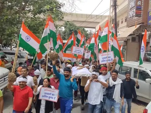 अग्निपथ योजना के विरोध में निकाली शव यात्रा में शामिल युवाओं में काफी जोश दिखा। सरकार व अग्निपथ योजना की निकाली गई शव यात्रा को नेतृत्व नवीन जयहिंद ने किया। नवीन जयहिंद ने कहा कि सरकार ने अग्निपथ योजना लाकर युवाओं से खिलवाड़ किया है। युवा सेना में केवल वेतन के लिए नहीं जाते, बल्कि युवाओं में देश सेवा का जज्बा होता है। इसलिए देश की सेवा करने को सेना में भर्ती होते हैं। सेना में जाने के लिए युवा कई वर्षों से तैयारी कर रहे हैं। वहीं तीन-तीन साल एनसीसी में लगा दिए और अब सरकार केवल चार साल नौकरी देकर युवाओं के भविष्य से खिलवाड़ कर रही है।