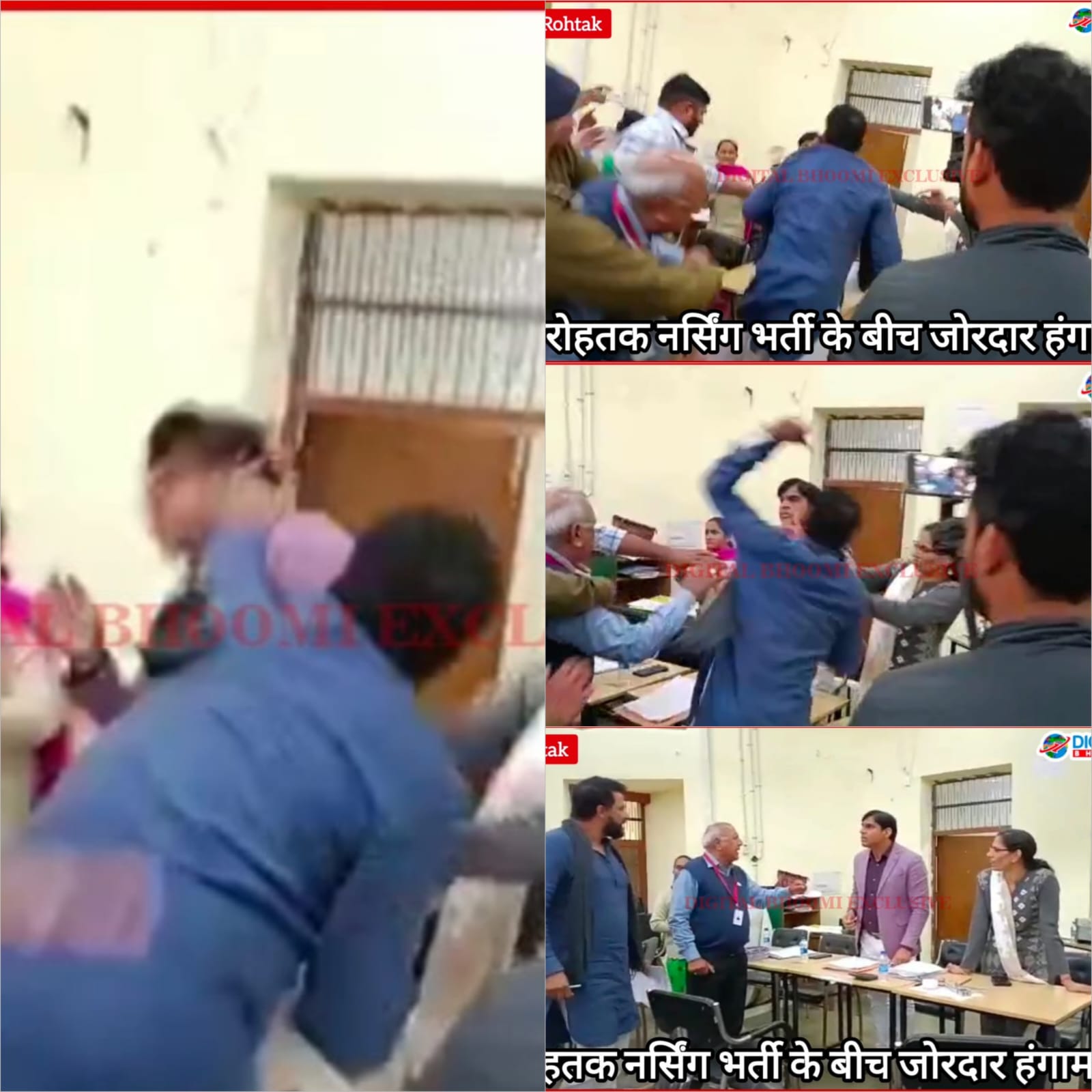 रोहतक स्थित PGIMS में आज बुधवार को नर्सिंग भर्ती के लिए दस्तावेजों की जांच के दौरान हंगामा हो गया। हंगामा इतना बढ़ा कि नौबत हाथापाई तक आ गई और जमकर लात-घूंसे चले। काफी समय तक हंगामा चलता रहा और सुरक्षाकर्मी बीच-बचाव करते नजर आए, लेकिन कोई असर नहीं हुआ।