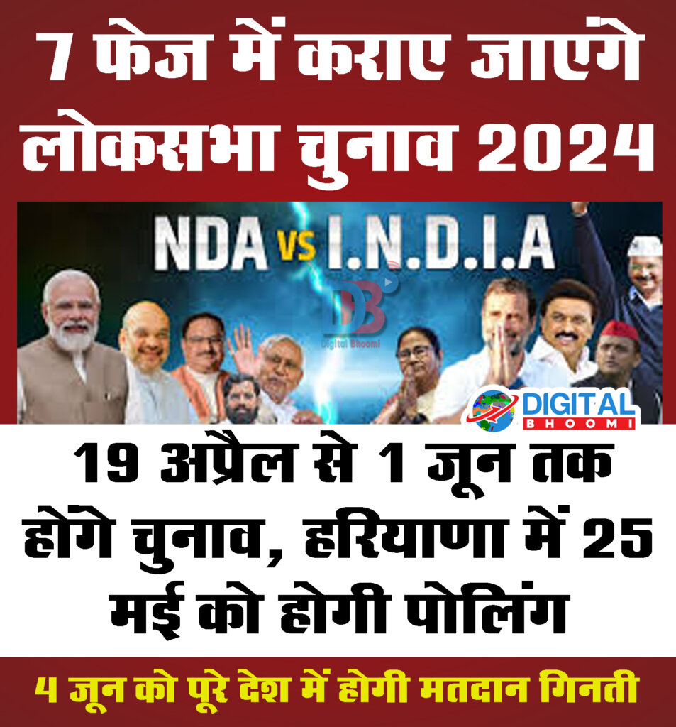 हरियाणा की 10 लोकसभा सीटों पर 25 मई को वोटिंग होगी। काउंटिंग 4 जून को होगी। नामांकन की शुरुआत 29 अप्रैल से होगी। नामांकन का अंतिम दिन 6 मई रहेगा। 9 मई तक नामांकन वापस लिए जाएंगे।