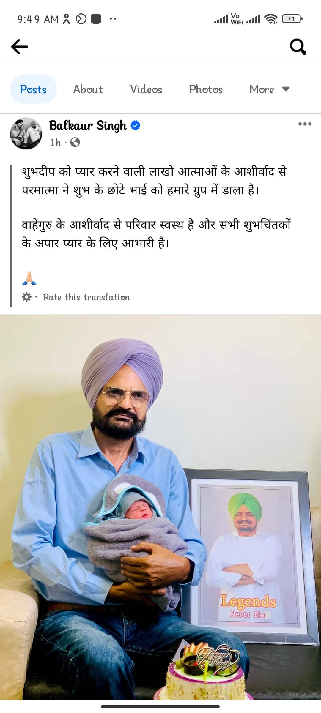 पंजाबी सिंगर सिद्धू मूसेवाला के घर किलकारियां गूंजी हैं। उनकी मां चरण कौर ने बेटे को जन्म दिया। सुबह करीब 5 बजे बठिंडा के प्राइवेट अस्पताल में बच्चे का जन्म हुआ। मूसेवाला के पिता बलकौर सिद्धू ने खुद यह जानकारी सोशल मीडिया पर शेयर की है। उन्होंने बच्चे का फोटो भी शेयर किया है।