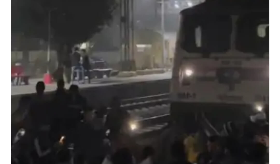 हरियाणा के गुरुग्राम रेलवे स्टेशन पर बीती रात हंगामा हो गया। नए साल पर खाटूश्याम में बाबा श्याम के दर्शनों को जाने के लिए हजारों श्रद्धालु रेलवे स्टेशन पहुंचे थे। ट्रेन में दरवाजे न खुलने पर लोग भड़क गए ओर रेलवे पटरी पर बैठ कर ट्रैक जाम कर दिया। रेलवे पुलिस ने कड़ी मशक्कत के बाद लोगों को हटाया। ट्रेन पर पथराव व कईयों को चोटें आने की सूचना भी है।