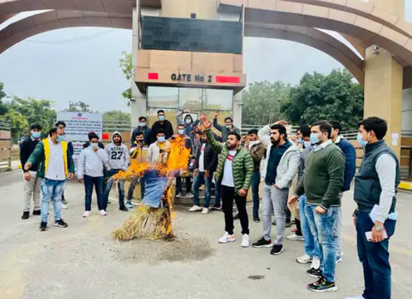 हरियाणा में रोहतक जिला स्थित महर्षि दयानंद विश्वविद्यालय में छात्रों ने सोमवार को फीस बढ़ोतरी को लेकर विरोध प्रदर्शन किया। एमडीयू के गेट से प्रदर्शन करते हुए छात्र वीसी व रजिस्टरार कार्यालय तक गए और बढ़ी हुई फीस को वापस लेने की मांग की। सुनवाई न होने पर छात्रों ने यूनिवर्सिटी के वीसी प्रोफेसर राजबीर लोहान का पुतला भी फूंका।