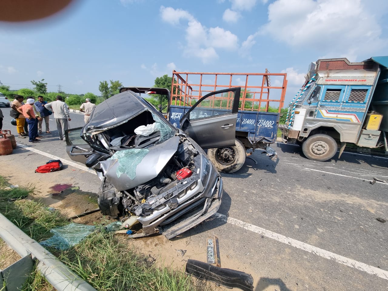 टैक्टर व ब्रेजा कार दोनो रोहतक की तरफ से महम की तरफ जा रहे थे अचानक ब्रेजा कार का संतुलन बिगड़ ट्राली में जा घुसी जिसकी सूचना मिलते ही 112 नम्बर गाड़ी पर तैनात पुलिस मौके पर पहुची ओर तपदीश कर रही है।