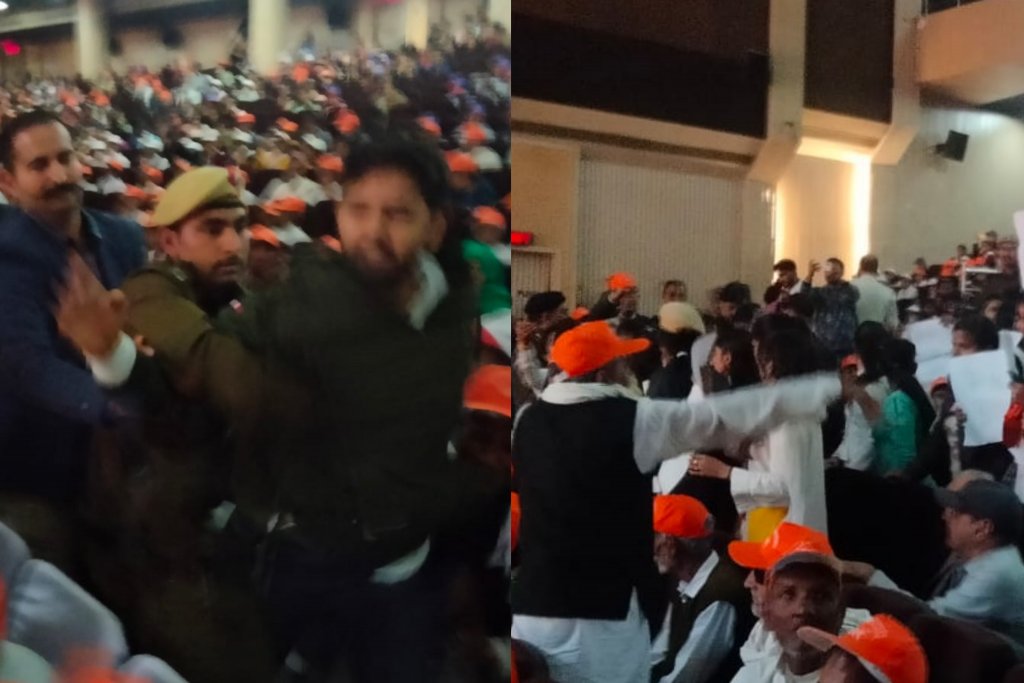 बता दे पहले ई टेंडरिंग का विरोध कर रहे सरपंचों ने एकजुट हो वहां पहुंच एमडीयू गेट नंबर 2 पर काले झंडे दिखाकर CM मनोहर लाल के कार्यक्रम का विरोध किया। इसी दौरान डीएसपी यशपाल खटाना के नेतृत्व में पुलिस ने मुख्यमंत्री का विरोध करने पहुंचे सरपंचों को देवीलाल पार्क से दौड़ा दौड़ा कर हिरासत में लिया। तो वही कार्यक्रम शुरू होने के बाद छात्राओं ने बवाल कर दिया और जमकर हूटिंग और नारेबाजी की।