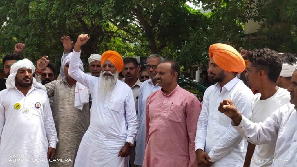 केंद्र सरकार की अग्निपथ योजना के ख़िलाफ़ युवाओं के साथ साथ किसान भी आंदोलन में कूद पड़े हैं। किसान नेता गुरनाम सिंह चढूनी के साथ सैकड़ों किसान रोहतक में भाजपा प्रदेश कार्यालय के बाहर धरने पर बैठे और सरकार के खिलाफ नारेबाजी की। साथ ही सरकार को चेतावनी भी दी अगर सरकार ने अग्निपथ योजना वापिस नही ली तो जाट आरक्षण और किसान आंदोलन से बड़ा आन्दोलन होगा।